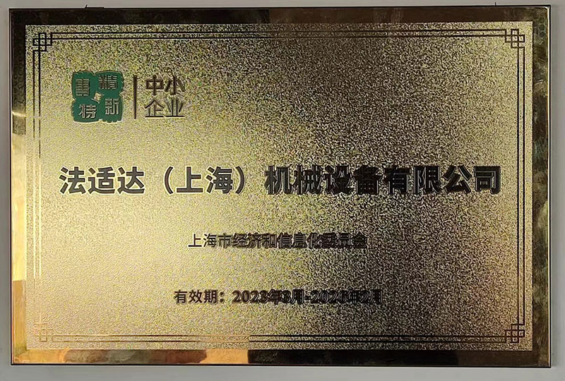 法適達(dá)(上海)機(jī)械設(shè)備有限公司榮獲上海市經(jīng)濟(jì)和信息化委員會頒發(fā)的《上海市專精特新中小企業(yè)》牌匾